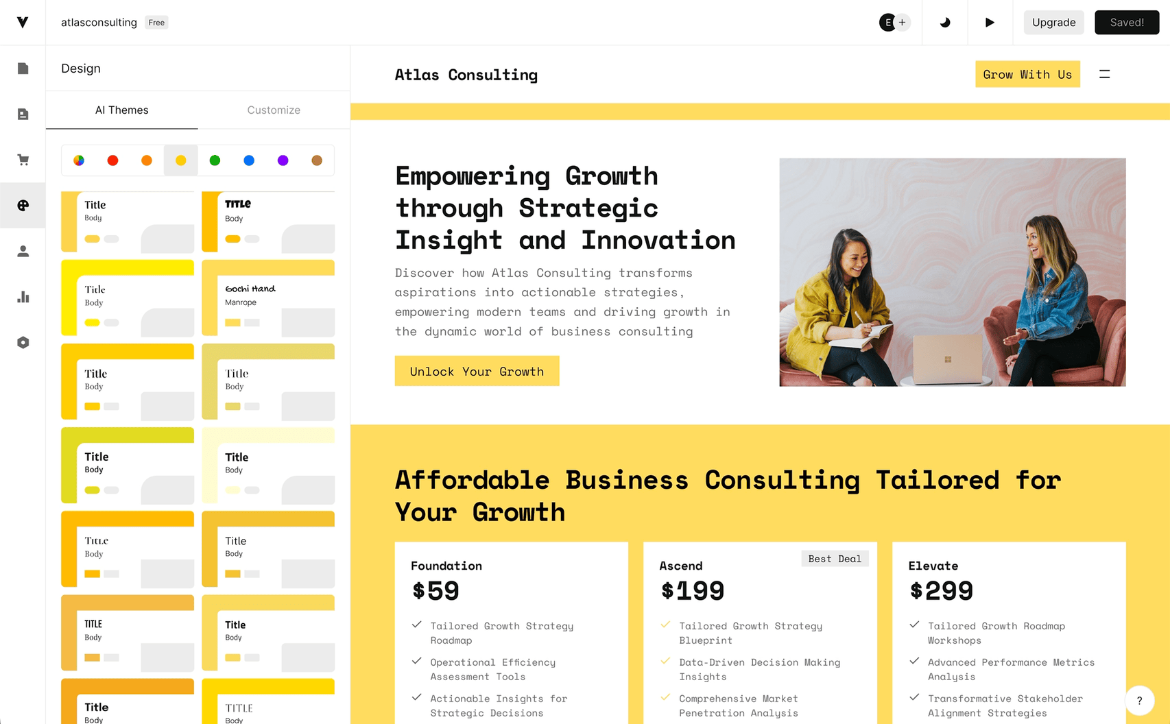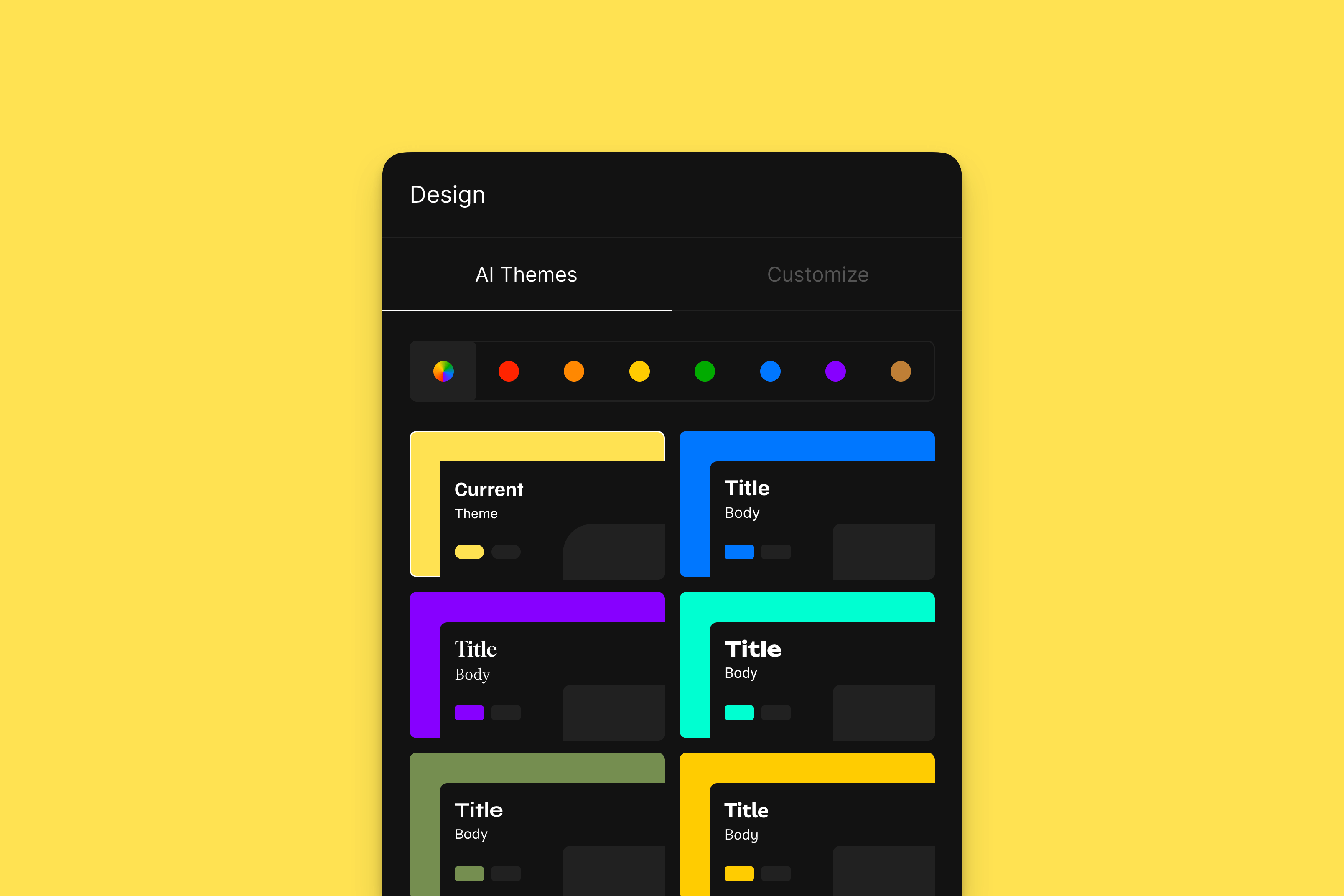 Website creation involves a web of interdependent decisions around typography, color, layout, accessibility, and responsiveness that typically require design and development expertise. When generated by AI, these decisions must remain flexible enough to create visual variety while being constrained enough to prevent broken layouts or inconsistent quality. The challenge was to define a system that could simplify this complexity into intuitive controls, balance creative freedom with structural rules, and scale reliably across many industries and use cases.